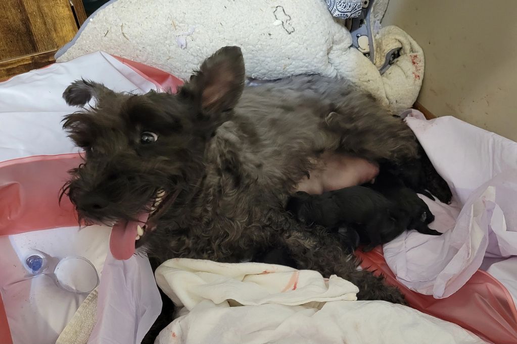 Our new mom, Merlot had 5 pups early this morning! Two girts (spoken for) and three boys!