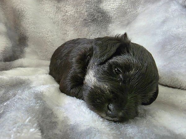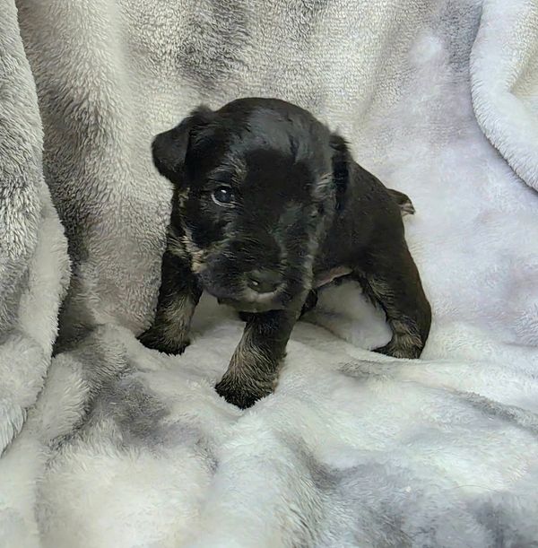 Merlot and Bristow make a great pair. They both have great personalities, love cuddles and play and are very loyal. Merlot is solid black and Bristow is black and silver. We expect all the pups to be one or the other.